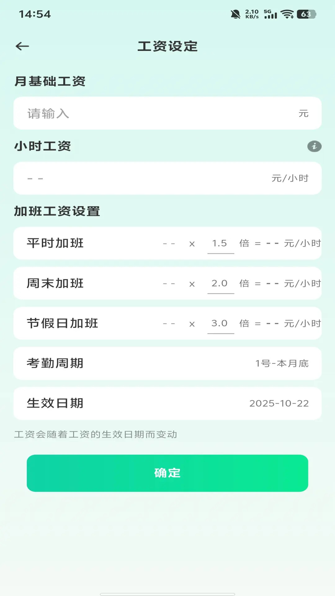 支持设置基本工资、小时单价(如“大工30元/时”),适配不同工种需求,工资计算有依据;添加加班记录(日期/时长),系统按“平时1.5倍”“周末2倍”自动核算加班费,避免手动计算出错;自定义每月考勤周期,匹配工地实际排班,统计更精准;