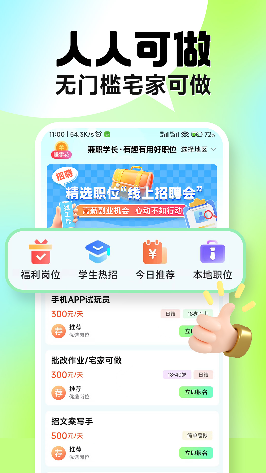 未满18周岁请勿下载本平台兼职,按国家相关法律规定,本平台暂不向未成年人提供岗位招聘服务。 全新兼职找副业平台-兼职学长,真实可靠的求职找工作软件,海量岗位,无门槛人人可做。 各种岗位每天更新,适合上班族,宝妈、斜杠青年、大学生。让你轻松兼职找工作。 现职工资不高?但是空闲时间多,来找兼职做副业! 服务全面:各种兼职类型,求职招聘领域应有尽有。 岗位多样,全国可做,在家轻松找兼职!其岗位覆盖全国各大省市,方便您随时随地找到合适的兼职。