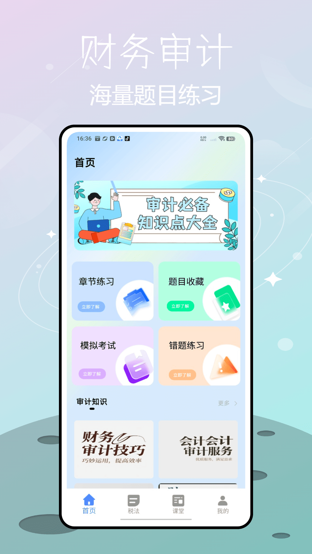 税税通是一款专业高效的备考工具,专为税务师考生设计,里面覆盖了题目练习、审计知识、税务知识、考点精讲等核心模块,助力用户系统学习、高效提分。题库练习提供了历年题目、模拟题及章节习题来练习,还能错题归纳重做,帮助考生查漏补缺。税务知识库里经过系统梳理了审计流程、税法政策及实务操作,搭配案例解析来强化专业理解。考点精讲,针对于高频考点及难点提供视频/图文精讲,直击考试重点,提升复习效率。 适合零基础入门或冲刺提分,帮助考生科学规划、高效通关!