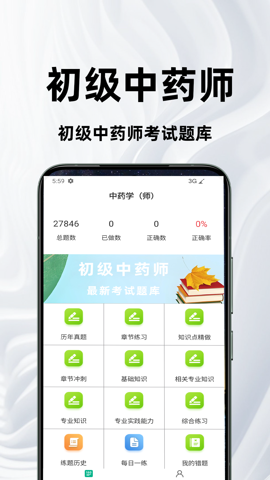 初级中药师百分题库软件为初级中药师考生而准备的最新精选题库。基础知识、相关专业知识、专业知识、专业实践能力全科目,为考生提供了方便的复习利器,利用碎片时间,随时随地学习练习。 初级中药师考试题型共为A1、B1两个题型。 A1型单选题是题干以论述题形式出现,或为叙述式,或为否定式。答题时,要求在5个备选答案中肯定或否定1项,作为正确答案。 B1型共用备选答案单选题,每道试题由A、B、C、D、E 5个备选答案与2个或2个以上的题干组成,5个备选答案在前,题干在后。答题时,要求为每个题干选择1项作为正确答案。每个备选答案可以选用1次或1次以上;也可以1次也不选用。为了试卷的规范化及分数计算的统一性,命题时要求B1型题一律用2个题干。 【功能介绍】 1、专项试题练习:针对知识点的习题进行强化练习,可选择不同题型,并可手动将易错或未牢固掌握的题加入复习库和错题库,以便反复练习。 2、招考冲刺预测,带答案详解。 3、历史真题:最新历史真题题目及解析。 4、错题库:可自动加练习过程中错题加入收藏,以便反复练习。 5、收藏夹:可在练习过程中自行收录题目到收藏夹,形成自己的小题库,针对性练习,提高通过率。 适合全国卫生专业技术资格考试,中药师、中药学(师),题库附教材大纲,试题附解析,可随时随地练习, 是中药师考试过关神器;可随时随地学习练习,有效帮助各位考生顺利通过考试。 初级中药师资格考试范围 (一)适用人员范围:经国家或有关部门批准的医疗卫生机构内,从事中药学专业工作的人员。 (二)专业及级别范围:中药学专业分为初级资格(含士级、师级)、中级资格。 (三)考试科目设置:初、中级卫生专业技术资格考试设置“基础知识”、“相关专业知识”、“专业知识”、“专业实践能力”等4个科目。 各科目值比例: 基础知识:中药学和方剂学,比例是60:40 相关专业知识:中医学基础、中药药理学和药事管理,比例是45:15:40 专业知识:中药炮制学和中药鉴定学,比例是45:55 专业实践能力:中药药剂学和中药调剂学,比例是50:50