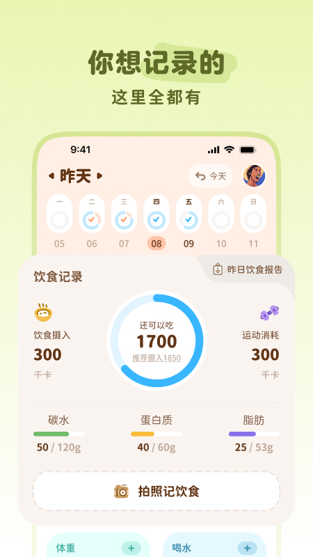 pika健康是一款面向减重塑形、运动健身及关注健康人士的智能饮食记录与热量管理应用。它不止关注数据,更在乎你的感受!在这里,你可以自由设定AI伙伴的个性、身份和昵称,打造一个真正懂你的专属健康拍档——TA既是你的营养顾问,也是你坚持保持健康路上的暖心陪伴,帮助你一步步走向更好的自己! 特色功能包括: 【个性化AI伙伴】根据喜好设定AI的性格特点与专属昵称,随时随地陪你交流、为你答疑,让减重之路充满温暖,不再孤单前行! 【拍照识别营养】只需对食物拍照,即可快速获取热量信息及碳水化合物、蛋白质、脂肪等营养构成。省去手动输入的麻烦,高效管理每日饮食。 【对话记录饮食】告诉TA“今天午餐吃了一碗米饭和一份炒青菜”,TA会自动识别营养成分并完成记录。随时掌握已摄入量和剩余预算,饮食安排更清晰。 【语音输入记录】不方便打字?没事儿~动动口就能记录饮食,识别准确又省时。 【健康数据看板】整合记录体重、饮水量、运动消耗、步数、膳食热量和BMI等多维数据,轻松掌握健康变化趋势。 【个性化营养方案】结合你的身体指标与生活习惯,定制每日适宜的热量摄入及三大营养素比例,让饮食规划有据可依,目标更明确哦~