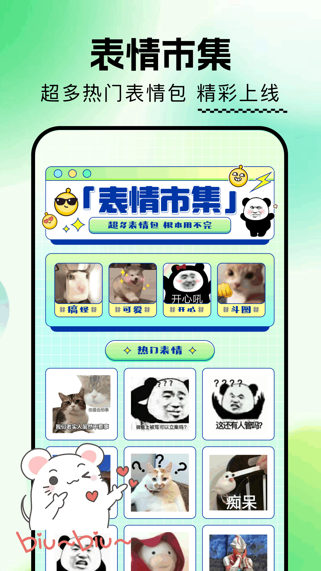 一款集合超多热门表情的表情包APP,拥有海量表情、大量表情模板。制作魔性表情专属于你,聊天斗图开外挂,让你成为聊天牛人。 【功能简介】 1. 聊天斗图,表情包不够用?海量表情任你选; 2. 表情包千变一律?海量模板创作,专属于你; 3. 定期实时更新,热门表情抢先用;